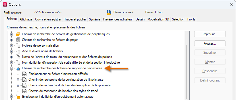 Le fichier de configuration du traceur lui-même n'est pas migré ; une copie du fichier est créée dans le sous-dossier nommé Nom du produit Fichiers PC3. |