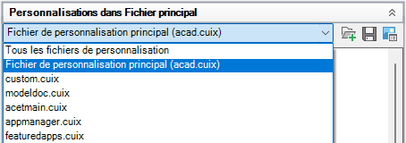 Créez, renommez, réinitialisez ou restaurez des fichiers de personnalisation (CUIx) à l'aide de l'éditeur Personnaliser l'interface utilisateur. Spécifiez le fichier de personnalisation principal ou d'entreprise du programme.