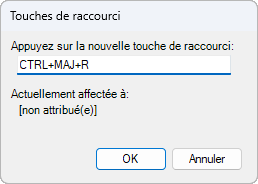 6. Cliquez sur OK pour affecter la combinaison de touches et fermez la boîte de dialogue Touches de raccourci.
