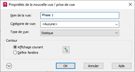La boîte de dialogue Propriétés de la nouvelle vue/prise de vue s’ouvre.