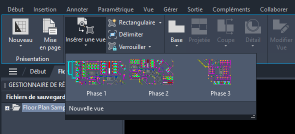 Une fois que vous avez ajouté une vue existante dans l’espace objet, vous pouvez l’utiliser pour créer une fenêtre dans une présentation.
