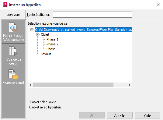 Pour en savoir plus sur l’utilisation d’hyperliens dans les dessins, y compris l’utilisation d’un hyperlien vers une vue existante dans un dessin distinct, consultez la rubrique Avez-vous essayé : ajouter des hyperliens à des fichiers DWG.