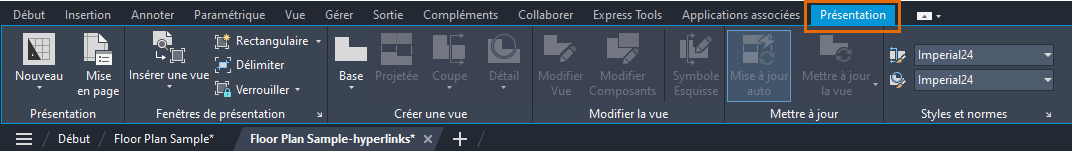 Une fois que vous avez créé une vue existante, vous pouvez utiliser un hyperlien qui permet d’ouvrir et d’afficher la vue existante, même à partir d’un autre dessin. Un plan clé est un exemple où cela peut être utile.