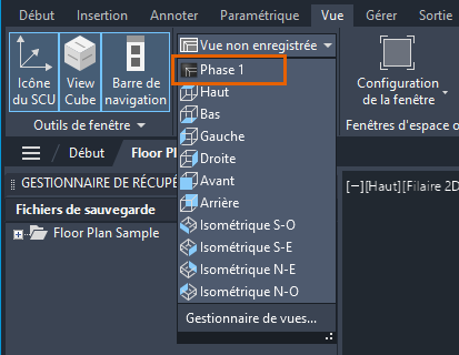| VUE | Enregistre et restaure les vues d’espace objet, les vues des présentations et les vues prédéfinies existantes. |