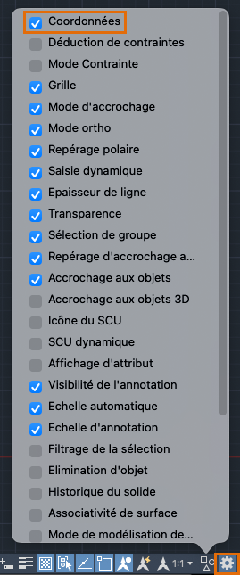Pour modifier l'affichage des coordonnées dans la barre d'état