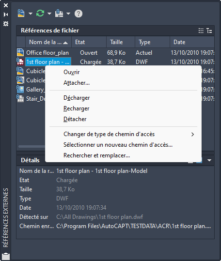 Si la référence que vous sélectionnez pour l'édition comporte des xréfs ou des définitions de bloc associées, elle apparaît avec ses références imbriquées dans la boîte de dialogue Edition des références, où vous pouvez les sélectionner. Les références imbriquées sont affichées uniquement si l'objet choisi fait partie d'une référence imbriquée. Vous ne pouvez sélectionner qu'une référence en vue de la modifier. Si vous éditez une référence contenant des objets OLE, ces derniers sont affichés mais ne peuvent pas être sélectionnés à des fins de modification.