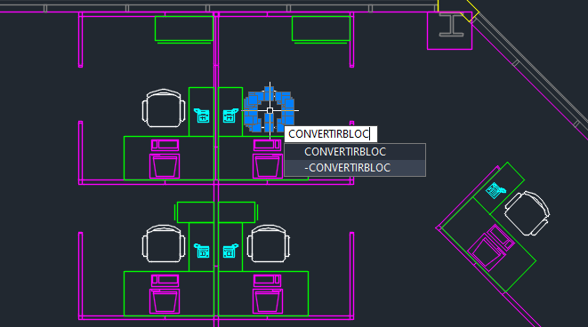 La commande CONVERTIRBLOC vous permet de rechercher facilement plusieurs occurrences de la géométrie spécifiée et de les convertir en blocs.
