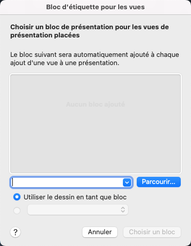 Boîte de dialogue Bloc d'étiquette pour les vues
