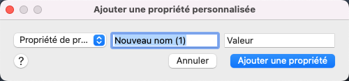 Crée une propriété personnalisée à associer au projet courant ou à chaque présentation.
