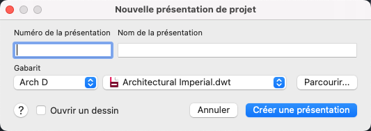 Cliquez sur Parcourir pour sélectionner le fichier gabarit de dessin (DWT) dans le Finder.