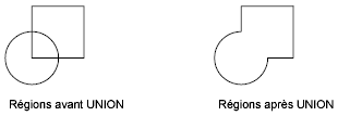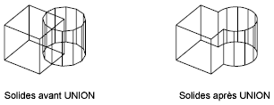 Combine les solides 3D, surfaces ou régions 2D sélectionnés par addition.