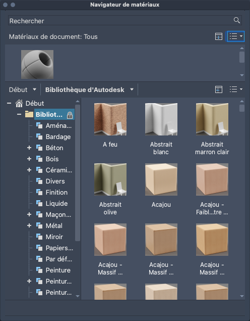 Le navigateur de matériaux permet de parcourir et gérer vos matériaux.