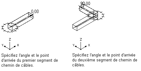 Dessin à des angles et des élévations différents à l'aide de la boussole. L'exemple ci-dessous illustre le dessin d'une longueur de gaine rigide à l'aide de segments alignés sur trois plans SCU différents avec la boussole activée.