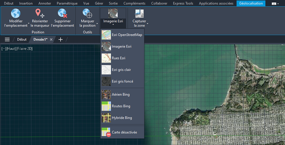Vous pouvez maintenant utiliser cinq types supplémentaires de cartes Esri pour affecter des informations d’emplacement géographique à un fichier de dessin.