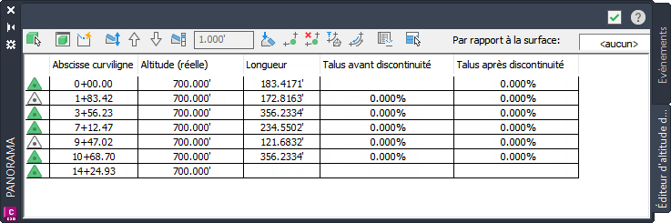 Figure 1 : Editeur d'altitudes, affichant deux points de segmentation