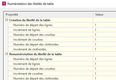 Figure 18 : Option de numérotation des libellés de table