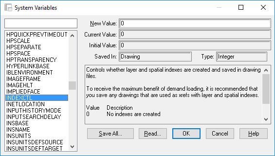 Si votre groupe de travail est important, vous pouvez créer un script que vous exécuterez sur chaque ordinateur afin d'uniformiser les paramètres AutoCAD. Pour ce faire, configurez les variables sur un premier ordinateur, puis cliquez sur Save All dans la boîte de dialogue System Variables. Les paramètres sont enregistrés dans un fichier SVF ou SCR qui peut être exécuté sur un autre ordinateur pour les mettre à jour. Pour plus d'informations, cliquez sur Aide dans la boîte de dialogue System Variables.