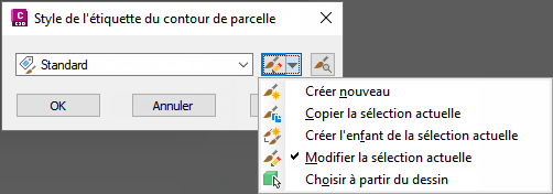 L'éditeur du style d'étiquette est accessible via l'option Modifier la sélection actuelle.