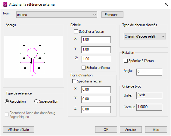Attacher Nous vous conseillons d'affecter la valeur Chemin d'accès relatif au paramètre Type de chemin d'accès.