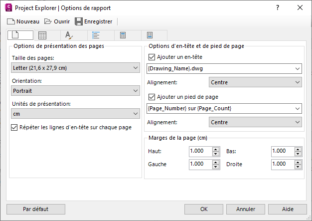 Les styles de rapport définissent le format de page, les polices, le style de table et le contenu de l’en-tête/du pied de page des rapports sortants.