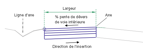 Cet élément de profil type crée une représentation de lignes de profil en travers d'une voie de circulation insérée à partir du bord intérieur de la chaussée vers le point de dévers.