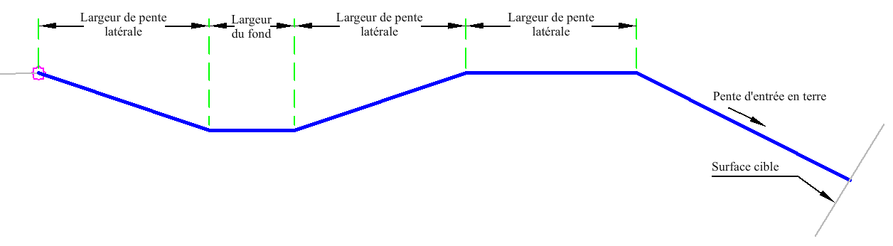 La pente de la risberme est également prédéfinie et le lien créé s'étend jusqu'à ce qu'il détecte une cible de surface.