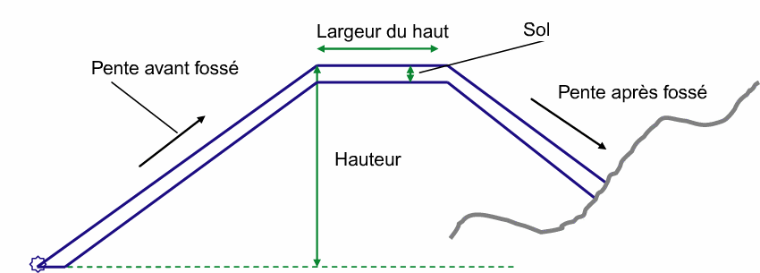 | Pente après fossé | Pente par défaut du lien de la pente après fossé du séparateur. | Numérique | 1:1.5 |