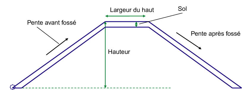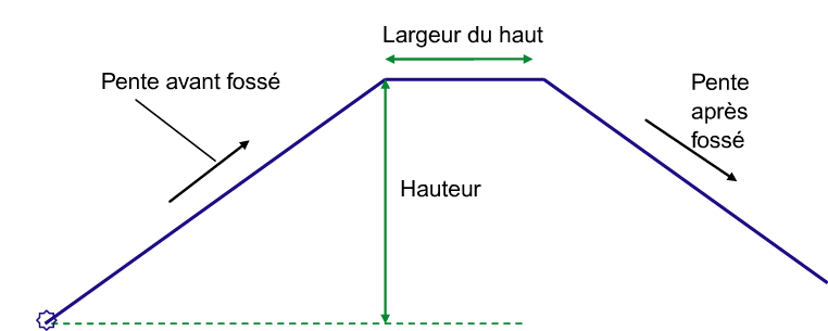 Si la pente après fossé est liée à une surface, la hauteur de ce côté est ajustée à l'entrée en terre dans la surface, comme illustré ci-dessous.