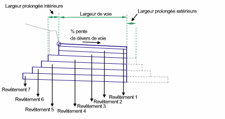 Chaque couche possède ses propres options d'extension sur l'intérieur comme sur l'extérieur. Les extensions intérieures et extérieures indiquent la largeur supplémentaire sur l'intérieur ou sur l'extérieur par rapport à la couche de chaussée située immédiatement au-dessus.
