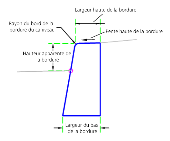 | Rayon du bord de la bordure du caniveau | Rayon du bord de la bordure du caniveau | Numérique, positive |