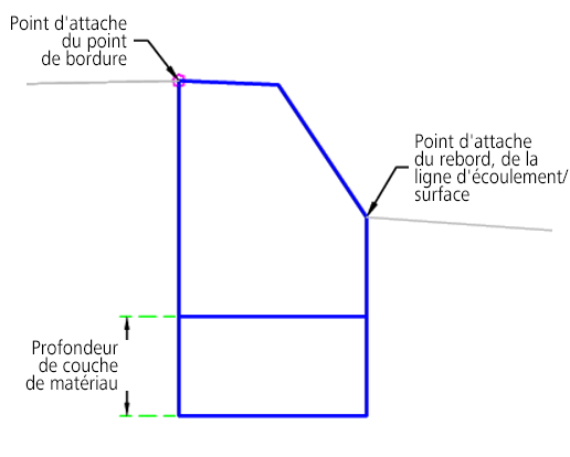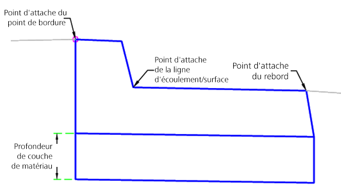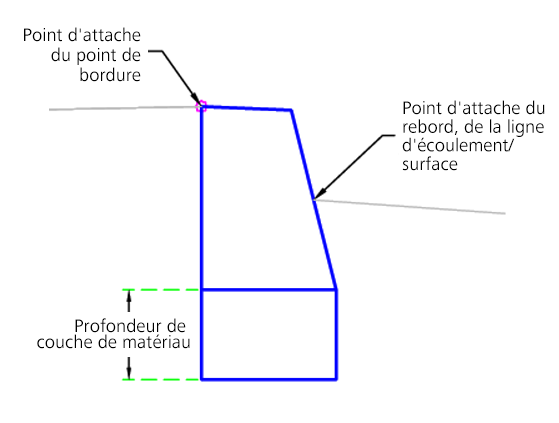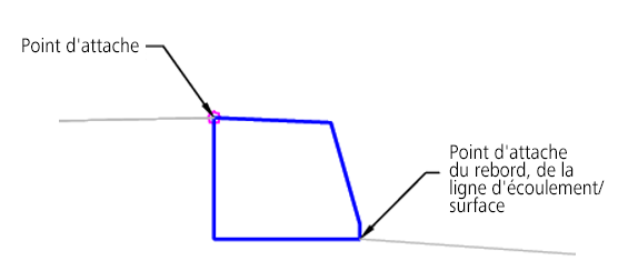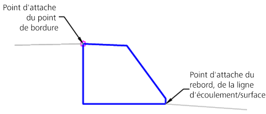 | Point d'attache | Spécifie l'emplacement du point d'attache de la bordure. | Rebord/PointBordure/Surface de la ligne d'écoulement |