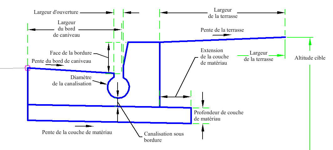 | L8 | SubbaseExtension | Extension de la couche de matériau derrière la bordure |