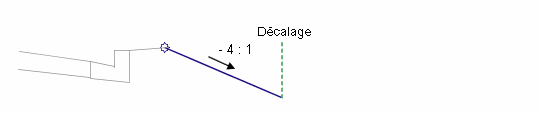 En mode d'édition, cet élément de profil type affiche le lien dessiné au décalage défini sur une pente de -4 : 1. Le lien se termine par une pointe de flèche orientée vers l'extérieur.