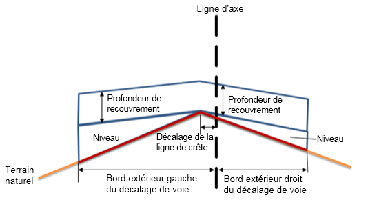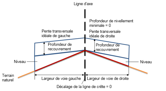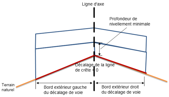 Profondeur de nivellement minimale entre la surface existante et la partie inférieure de la couche de recouvrement de droite.