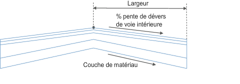Cet élément de profil type crée une voie en dévers ayant un contrôle de pente de couche de matériau distinct, ainsi que la capacité à contrôler l'emplacement du dévers de couche de matériau en précisant un axe cible.