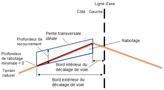 Les ajustements de l'altitude et de la pente transversale sont conformes à la profondeur de nivellement minimale et/ou à la profondeur de rabotage minimale. La surface existante constitue la base.