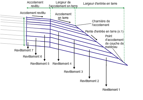| Pente d'entrée en terre | Ligne de profil en long qui définit l'altitude du point de l'accotement de la couche de forme. Les types d'objet suivants peuvent être utilisés comme cibles pour indiquer l'altitude : lignes de profil, polylignes 3D, lignes caractéristiques du terrain ou figures de topographie. | Facultatif |
