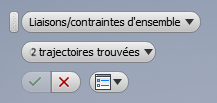 Une fois l'étude de la chaîne de cotes intégralement définie, une mini-barre d'outils apparaît et vous permet de spécifier les pièces comprises dans la boucle de la chaîne de cotes. Elles sont également désignées par le nom "surfaces de contrainte d'ensemble".