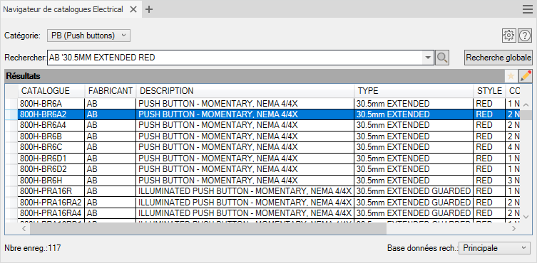 Si le navigateur de catalogues Electrical n'est pas ouvert, cliquez sur l'onglet Ensemble le groupe de fonctions Composant la liste déroulante Placer Navigateur de catalogues Electrical.
