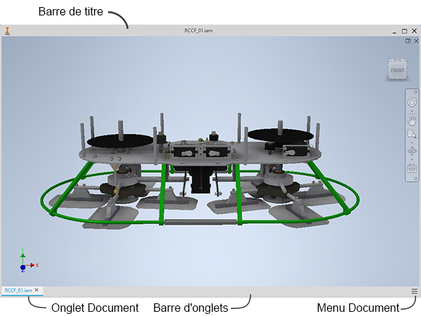 La fenêtre de l'application Inventor est la fenêtre contenant un ou plusieurs documents Inventor.