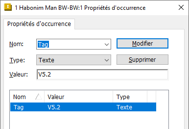 Affectation des propriétés d’occurrence à l’aide de la boîte de dialogue Nomenclature