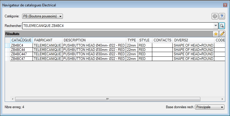 Utilisation du navigateur de catalogues Electrical dans l'environnement Câble et faisceau