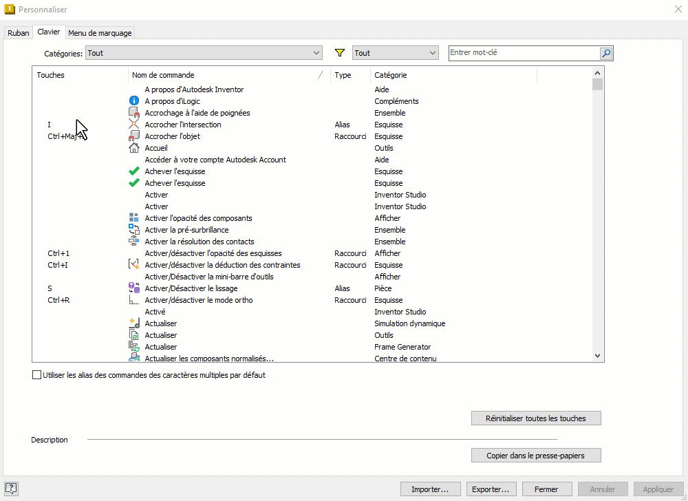 Pour en savoir plus, reportez-vous à la rubrique Utilisation des raccourcis clavier et des alias de commande personnalisés.