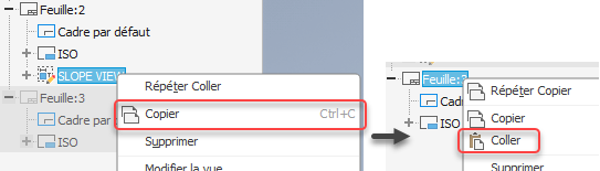 Déplacez facilement les croquis vers une autre feuille. Cliquez sur le nœud de navigateur et faites-le glisser de la feuille active vers la feuille cible.