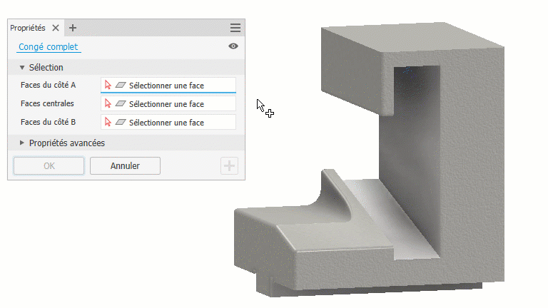 La commande Congé est déplacée vers la structure du panneau de propriétés et divisée en trois commandes : Congé, Congé de faces, Congé complet. Les congés hérités sont migrés vers le type approprié. Les noms de congé hérités ne sont pas modifiés lors de la migration.