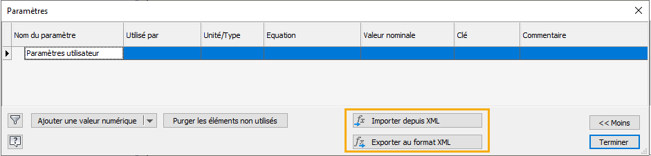 groupe de fonctions Paramètres, Importer depuis XML et Exporter au format XML, sont désormais également accessibles à partir de la boîte de dialogue Paramètres.