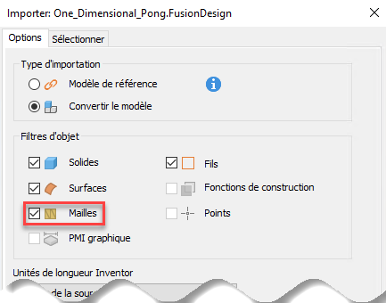 À l’ouverture de conceptions Fusion 360 Electrical avec des données de zone de dessin. Lors de la spécification des options d’importation, sous Filtres d’objet, incluez « Maillages ».