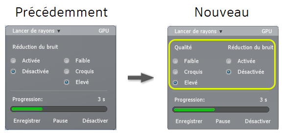 La boîte de dialogue Lancer de rayons a été améliorée pour clarifier l’objectif des options présentées.