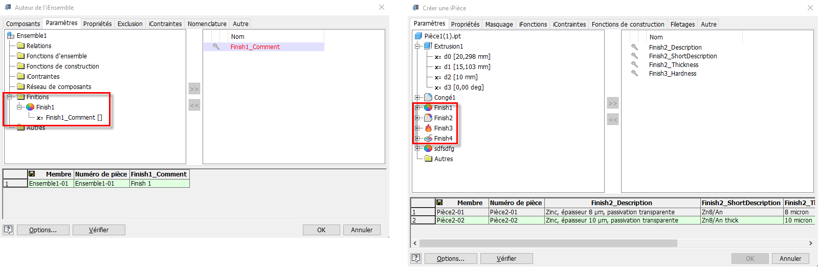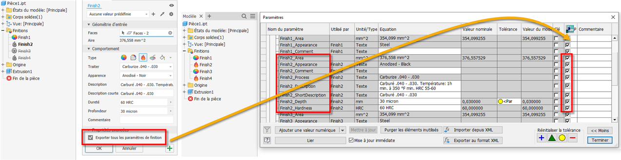Les paramètres de la fonction de finition peuvent désormais être capturés dans une iPièce et/ou un iEnsemble à l’aide des workflows de création.