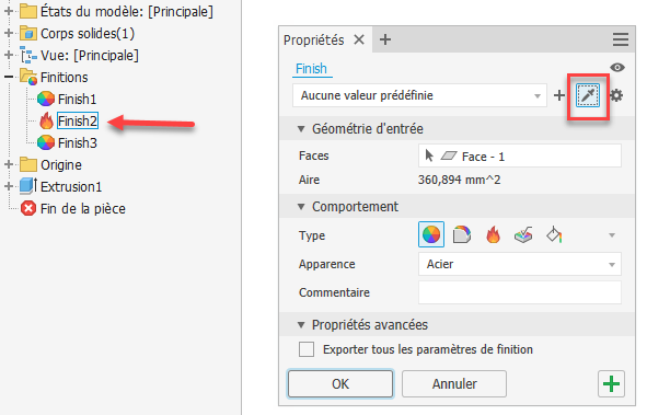 Pour en savoir plus, reportez-vous à la rubrique Affectation d’une finition à un composant.